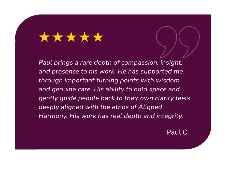 Paul is a spiritual teacher and mentor, author, international speaker and workshop facilitator, meditation guide, and founder of Aligned Harmony and Conscious Becoming. With more than two decades of experience in spiritual practice, energy work, and personal transformation, Paul helps people reconnect with their true selves, calm the nervous system, and awaken their natural ability to create a life aligned with love, joy, and freedom.